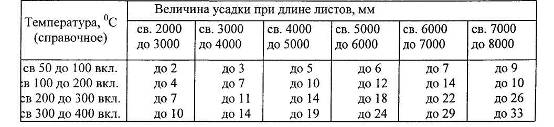 Разметка листов под порезку производится на разметочной машине согласно заказу с учетом температурной усадки металла (см. таблицы 11.5, 11.6). При разметке листов правая кромка размечается, а величина обрези с левой кромки определяется периодически проверкой ширины не обрезного листа.