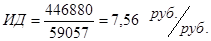 Так как ЧДД > 0, значит проект эффективен, и поэтому определяем индекс доходности, т.е. прибыль на каждый вложенный рубль. Он составляет 7,56. Окупаемость проекта составляет 1 год, а интегральный экономический эффект 387823 рублей. Следовательно, инвестору смело можно вкладывать деньги в данный проект.