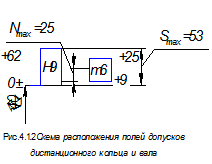 Назначаю посадку дистанционного кольца на вал по рекомендации [6, с.91]. Так как поле допуска вала задано в связи с установкой подшипника, в соединении поле допуска отверстия кольца H9: соединение
