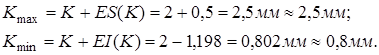 К–Иmax = dmax + Y1 + Hp / 2 = 50,021 + 0,003 + 0,002 / 2 = 50,025 мм;