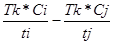 Сi,j – число единиц оборудования, работающих на смежных операциях в течении периода Тк, ti,j;