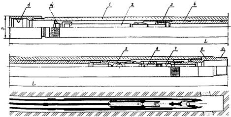 Рисунок 9 — Скважинный штанговый насос исполнения НН2Б и НН2Б…И 1 — цилиндр; 2 — шток; 3 — клетка плунжера; 4 — плунжер; 5 — нагнетательный клапан; 6 — шток ловителя; 7 — всасывающий клапан; 8 — седло конуса.