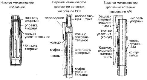 б) подземное оборудование — насосно-компрессорные трубы (НКТ), штанги насосные (ШН), штанговый скважинный насос (ШСН) и различные защитные устройства, улучшающие работу установки в осложненных условиях.