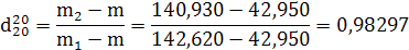 m1— масса пикнометра с водой, доведенной до метки при 20° С;
