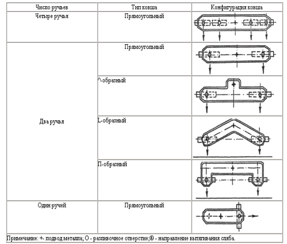 Некоторые формы промежуточных ковшей слябовых МНЛЗ приведены в табл. 1.3.