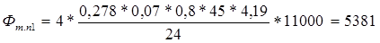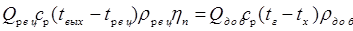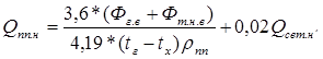 где qот и qв - удельная отопительная и вентиляционная характеристики здания, Вт/(м3 *0 С); Vн - объем здания по наружному обмеру (без подвальной части), м3 ; tв - средняя расчетная температура воздуха, характерная для большинства помещений здания, 0 С (прил.1,2); tн - расчетная зимняя