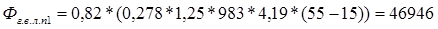 Определим поток теплоты требуемый на отопление птичника на 30000 кур несушек (1.3), объемом Vн =7832 м3 :