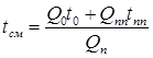 4. Температура воды на входе в котел tвх определяется из уравнения теплового баланса точки смешения В [стр. 140]:
