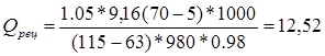 3. Расход воды в линии рециркуляции Qрец для предварительно принятого значения tрец перед поступлением воды в напорный коллектор сетевых насосов определяют по формуле [стр. 139]: