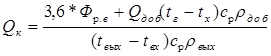 Определим поток теплоты требуемый на отопление птичника на 11000 цыплят (1.3), объемом Vн =4700 м3 :