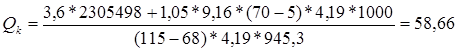 Теперь определим поток теплоты требуемый на вентиляцию птичника 1 (1.4):