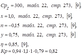 kу r - коэффициент, учитывающий влияние на Ру радиуса при вершине резца, принимаем kу r =1.