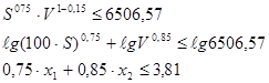 Пусть lg (100S) =x1 ; lgV =x2 , тогда