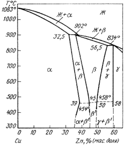Фаза g — твердый раствор на основе электронного соединения Cu5 Zn8 отличается очень высокой хрупкостью и ее присутствие в промышленных конструкционных сплавах исключается.