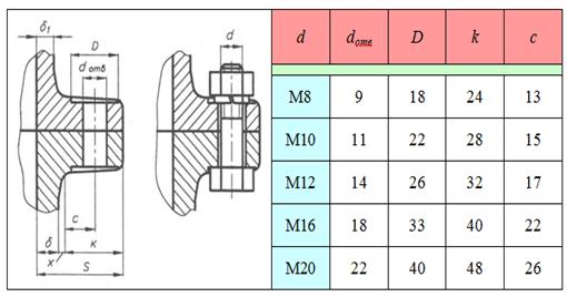 Конструкция и размеры крышек подшипниковых узлов (рис. 11.1) даны в таблице 11.5.