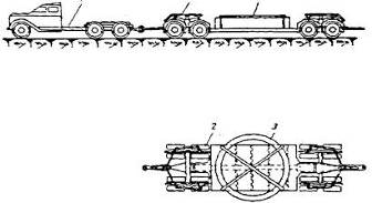 Тяжеловесное крупногабаритное оборудование по автодорогам перевозят на специальных транспортных средствах - прицепах-тяжеловозах, состоящих из отдельных тележек.