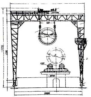 | 2 | Кран козловой г.п 120 тс. | КМК-120 | 9 | Место складирования обечаек | 6*32 м |