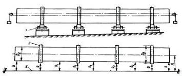 Для обеспечения равномерных нагрузок на краны аппараты рекомендуется стропить при условии максимального удаления мест строповки аппарата от кранов, т.е. в районе днищ аппаратов с помощью кольцевых стропов, ложных штуцеров или с использованием проектных люков или штуцеров. При невозможности значительного удаления мест строповки аппарата от кранов (рис. 2 г )необходимо применить балансирную траверсу.