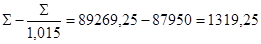 Σ’-Σ=90663,41–89269,25=1394,16 т.