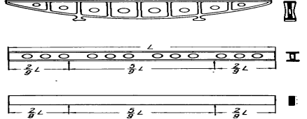Имеются два основных типа поверочных линеек (рис. 4.3.1): линейки с профилем равного сопротивления, линейки с параллельными рабочими сторонами (эти линейки могут быть с прямоугольным сечением или с сечением в виде двутавра со сплошной или имеющей вы резы стенкой). Чугунные или стальные поверочные линейки должны быть жесткими, усилены ребрами и подвергнуты старению для снятия внутренних напряжений. Момент инерции сечения поверочных линеек должен быть таким, чтобы обеспечить им надлежащую жесткость: линейки, концы которых свободно лежат на опорах, не должны прогибаться под собственным весом более чем на 10 мк на 1 м длины линейки. Наибольшая величина естественного прогиба линейки должна быть указана на одной из ее сторон. При пользовании поверочными линейками с параллельными рабочими сторонами между точками опоры линейки должно быть расстояние 5/э ее общей длины; эти точки опоры должны быть отмечены на линейке рисками.