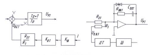 Регулятор тока организован по ПИ-закону управления с настройкой на модульный оптимум. Регулятор для обеспечения требуемых динамических параметров должен компенсировать электромагнитную постоянную Тя , а также малую постоянную времени контура тока Т01 (рисунок9).
