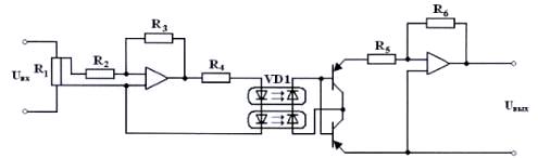 Датчик тока предназначен для преобразования тока якоря пропорциональное ему напряжение и включает в себя датчик и согласующее устройство. В качестве измерительного преобразователя в датчике использован шунт. В качестве элемента гальванической развязки принимаем микросхему оптоэлектронную полупроводниковую, состоящую из оптопар и транзисторных прерывателей типа К249, КН1Г. Выходное напряжение равно 3,5 В, входной ток равен 20 мА. На выходе датчика должно быть напряжение 10В.