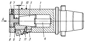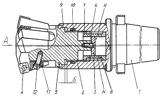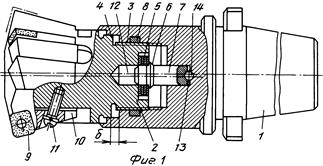 Использование: в области металлообработки, в частности при обработке отверстий инструментом, оснащенным многогранными пластинами. Сущность изобретения: зенкер включает режущие пластины 9. При их затуплении повышается тепловыделение из зоны резания и температура инструмента, а максимальный износ получает режущая пластина, которая за счет эксцентриситета наиболее удалена от оси вращения. При нагревании шайбы 5, контактирующей с кольцевым выступом 6 стержня 7, до температуры проявления эффекта памяти формы ее внутренний диаметр увеличивается, становится больше диаметра кольцевого выступа и шайба проходит за кольцевой выступ, при этом головка зенкера получает возможность осевого перемещения до соприкосновения кольцевого выступа с очередной шайбой. Поскольку головка зенкера поворачивается в эксцентричном резьбовом отверстии 3, то при повороте головки менее затупленные режущие пластины 9 выдвигаются в зону, где раньше находилась изношенная режущая пластина, т.е. Происходит самонастройка. Аналогично осуществляется поворот головки зенкера при проявлении эффекта памяти формы у других шайб, имеющих более высокие температурные интервалы проявления эффекта памяти формы и расположенных в порядке повышения указанных температурных интервалов.