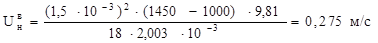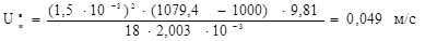 Известно, что в кипящем слое происходит перемещение более тяжелых частиц АУ в нижнюю часть реактора, которые вытесняют легкие частицы. В этих перемещениях принимают участие частицы АУ, насыщенные водой и насыщенные токсикантом. Поэтому необходимо рассчитать их скорости седиментации Uв и Uт .