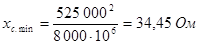 Индуктивная составляющая сопротивления сети в минимальном режиме, приведённая к стороне высшего напряжения: