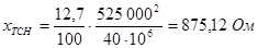 Значение индуктивной составляющей сопротивления трансформатора собственных нужд энергоблока, приведённое к стороне высшего напряжения: