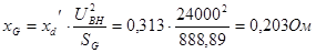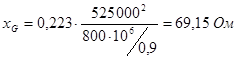 Значение индуктивной составляющей сопротивления генератора энергоблока, приведённое к стороне высшего напряжения: