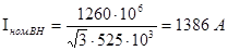 Номинальное значение первичного тока на стороне высокого напряжения энергоблока 500 кВ:
