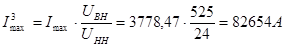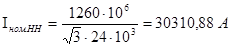 Номинальное значение первичного тока на стороне низкого напряжения энергоблока 24 кВ: