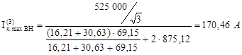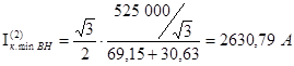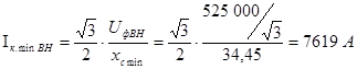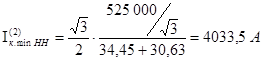 Минимальное значение тока двухфазного короткого замыкания на выводах НН трансформатора в минимальном режиме работы энергосистемы и при отключённом генераторе составляет:
