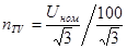 , а номинальное вторичное напряжение трансформатора напряжения равно 100 В, относительное напряжение срабатывания