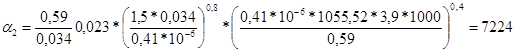 где w – скорость движения упаренного раствора, w = 0,5 м/с [10]