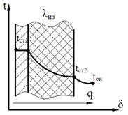 Определяем толщину тепловой изоляции δн , мм, из равенства удельных тепловых потоков через слой изоляции от поверхности изоляции в окружающую среду