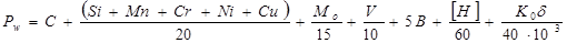 При РW < 0.285 холодные трещины в сварных соединениях не образуются. Для стали 30ХМА образование холодных трещин характерно.