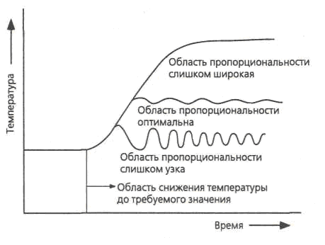 Рис. 28. Влияние ширины области пропорциональности на режим работы.