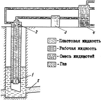 Рис. 12. Струйно‑насосная установка:1 – струйный насос; 2 – ловитель; 3 – силовой насос; 4 ‑ сепаратор; 5 – продуктивный пласт