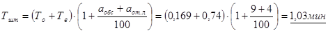 -сумма штучно – калькуляционного времени на изготовление детали, мин.