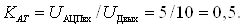 = 5 В. Тогда коэфициент ослабления аттенюатора определяется