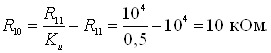 Примем сопротивление R11 равным 10 кОм. Тогда сопротивление R10 определяется