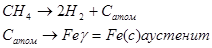 Атомарно углерод адсорбируется поверхностью стали и диффундирует в глубь металла.