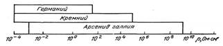 Рис.2.1 Диапазоны значений удельных сопротивлений различных полупроводников.
