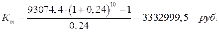 Коэффициент эффективности капитальных вложений определяется по формуле [8]: