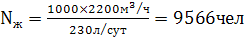где qж – удельное водопотребление (принимаем qж =230 л/сут).