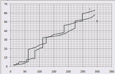 II. рабочий диапазон насоса типа К90/55 – (65-112 м3 /ч) и рабочий диапазон насоса типа К20/30 – (12-28 м3 /ч)
