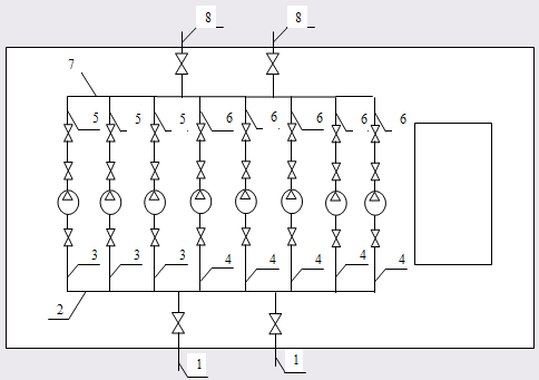 Размер машинного зала определяется количеством и габаритами насосных агрегатов, а также размещением трубопроводов, запорно-регулирующей и предохранительной арматурой. Определение основных размеров машинного зала в плане сводим к установлению ширины и длины помещения.