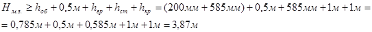 hкр – минимальная высота подъёмно – транспортного оборудования (1 м)